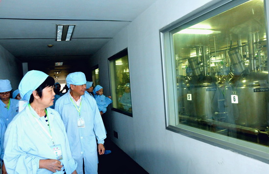 你見(jiàn)過(guò)藥品的生產(chǎn)過(guò)程嗎?進(jìn)入生產(chǎn)區(qū)域參觀前,市民換上了潔凈服,這讓市民肅然起敬:“這企業(yè)質(zhì)量把關(guān)得好啊!”生產(chǎn)工藝是一個(gè)企業(yè)產(chǎn)品的成功秘密之一,在工作人員的引導(dǎo)下,市民進(jìn)入了潘高壽“最神秘的區(qū)域”——生產(chǎn)區(qū)域,一睹潘高壽馳名產(chǎn)品的生產(chǎn)過(guò)程。