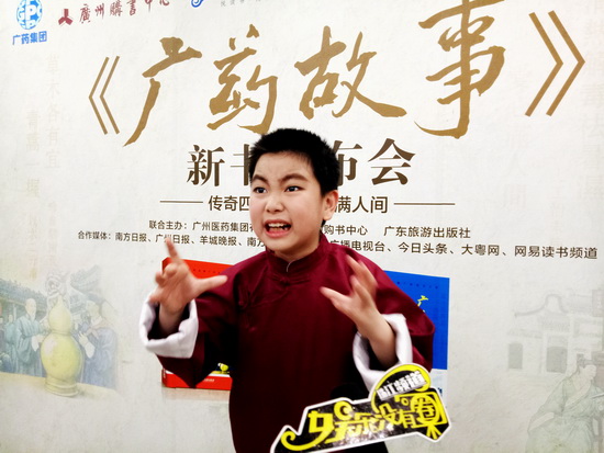 發(fā)布會現(xiàn)場,粵語講古小明星鄭博睿小朋友生動地演繹了王老吉來源的故事,吸引了眾多前來購書的市民與游客駐足觀看,并對嶺南中醫(yī)藥文化和廣藥的企業(yè)歷史文化產(chǎn)生了興趣濃厚。據(jù)悉,該套書籍已在京東商城、當(dāng)當(dāng)網(wǎng)同步上架銷售。